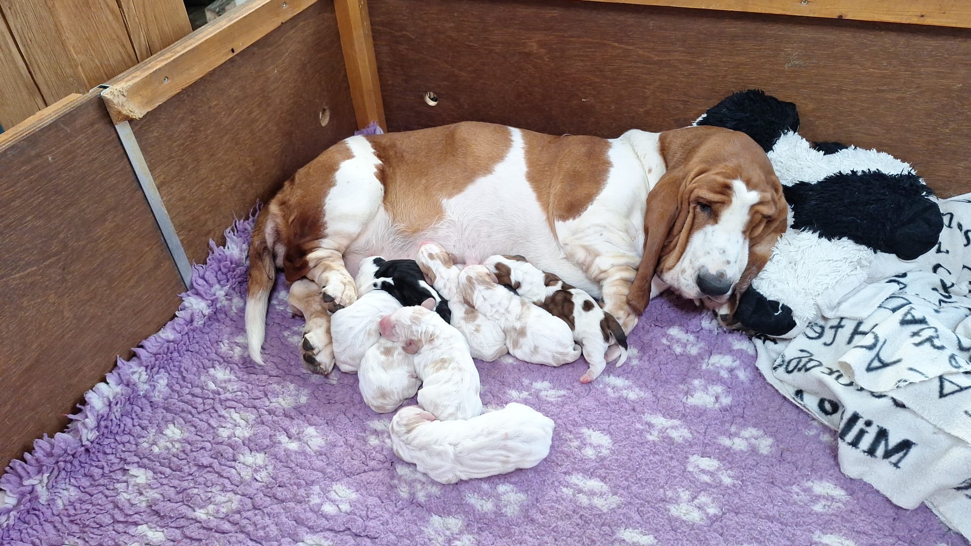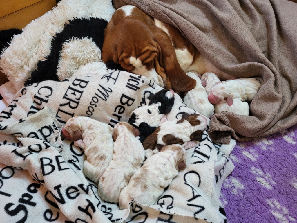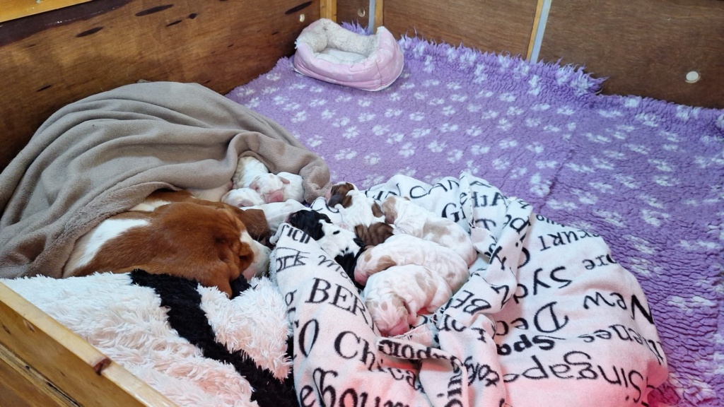 8 puppies, 1 reutje driekleur, 4 reutjes tweekleur, 1 teefje driekleur, 2 teefjes tweekleur